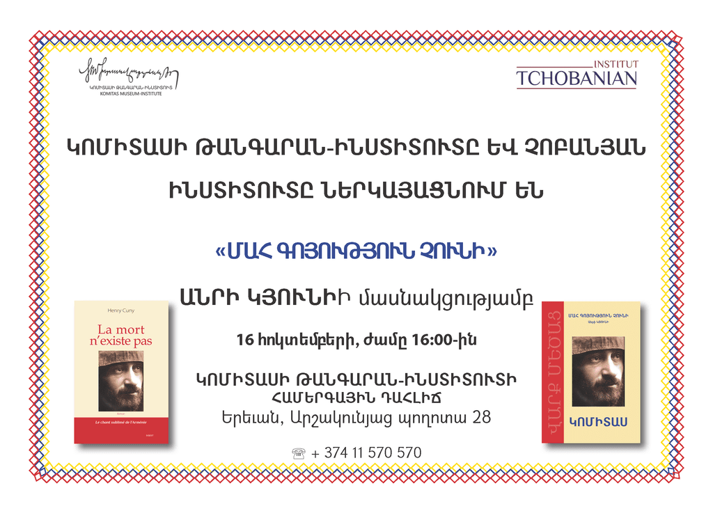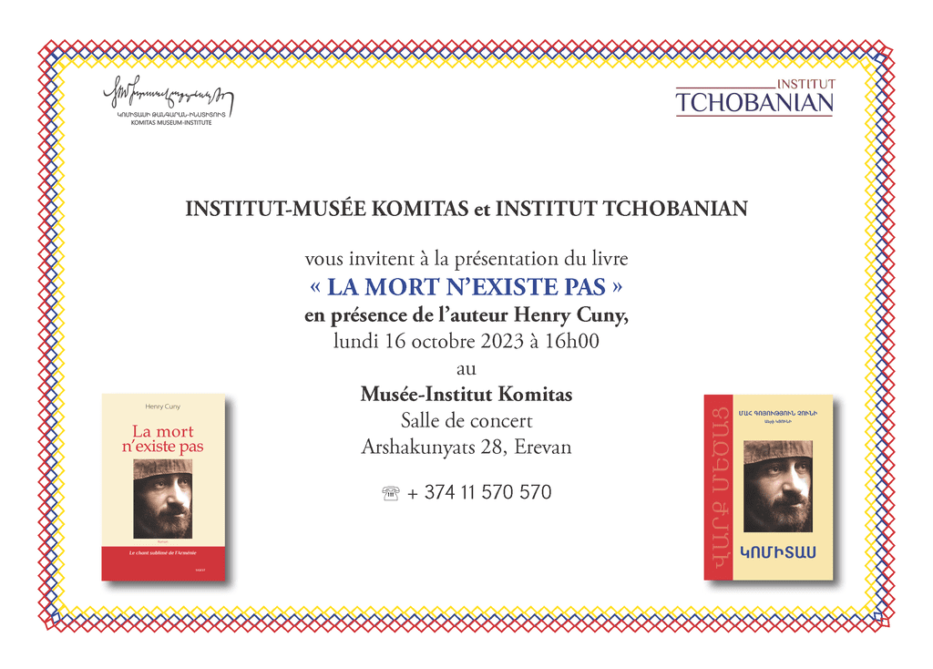 Dans le cadre des « Rencontres francophones d’Erevan » 2023, l’Institut Tchobanian, en partenariat avec le musée-Institut Komitas, organise la présentation du livre d’Henry Cuny, « La mort n’existe pas », en français et en arménien,ont été interrompues pendant la pandémie de la Covid et…