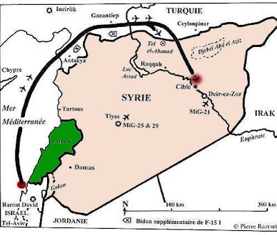 Une telle attaque aérienne ne peut se faire que via l’espace aérien turc. La dernière attaque aérienne israélienne contre un centre de recherche militaire dans le Sud de Damas s’était faite via le Golan syrien occupé en longeant la frontière avec le Liban. Depuis cette attaque l’armée syrienne a déployé des batteries de missiles Scud le long de la ligne de cessez le feu de 1974 rendant désormais impossible l’utilisation de cette voie aérienne par les avions de combat israéliens.