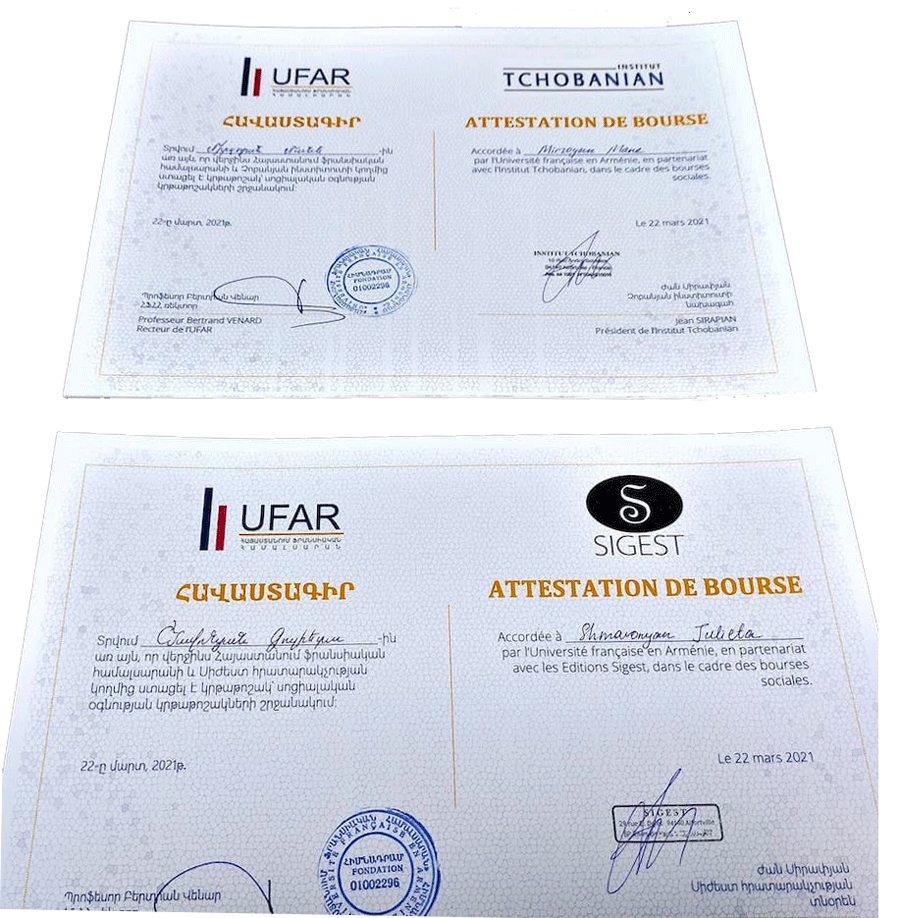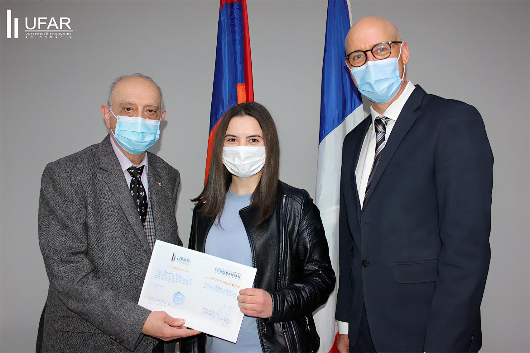 Lundi, le 22 mars 2021, deux cérémonies ont été organisées à l’Université française en Arménie (UFAR).