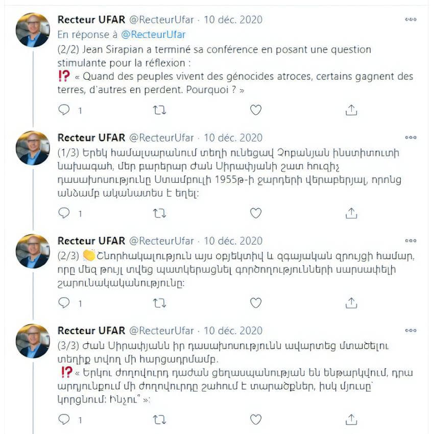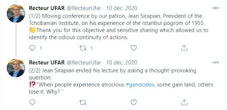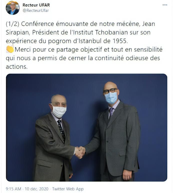 Le 9 décembre 2020, Jean Sirapian a été invité à l’UFAR pour donner une conférence sur les pogroms des 6-7 septembre 1955 à Istanbul et Izmir. Sujet abordé dans son dernier livre paru…