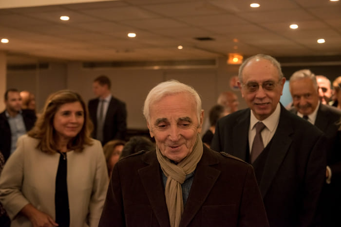 Rencontre Yaïr Auron et Charles Aznavour Aznavour et Auron, deux amis. A Paris À l’occasion de la parution de son dernier livre, « Sauveurs et Combattants », (éditions Sigest), qui raconte les liens entre la famille d’Aznavour et le groupe Missak...